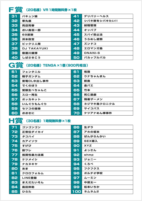 当選者の方は受付でアンケートネームと暗証番号をお伝え下さい。