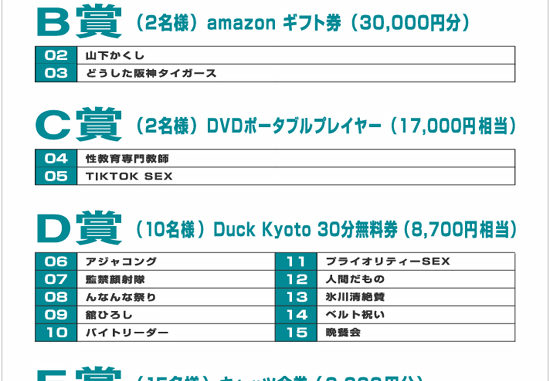 当選者の方は受付でアンケートネームと暗証番号をお伝え下さい。