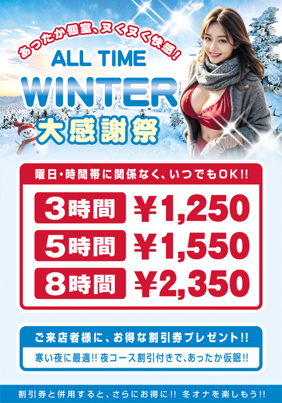 ALL TIME WINTER 大感謝祭 !! 絶賛好評開催中 !! 2025年11月21日 キャッツ お知らせ, キャンペーン情報 0 ALL TIME WINTER 大感謝祭 !! 絶賛好評開催中 !!