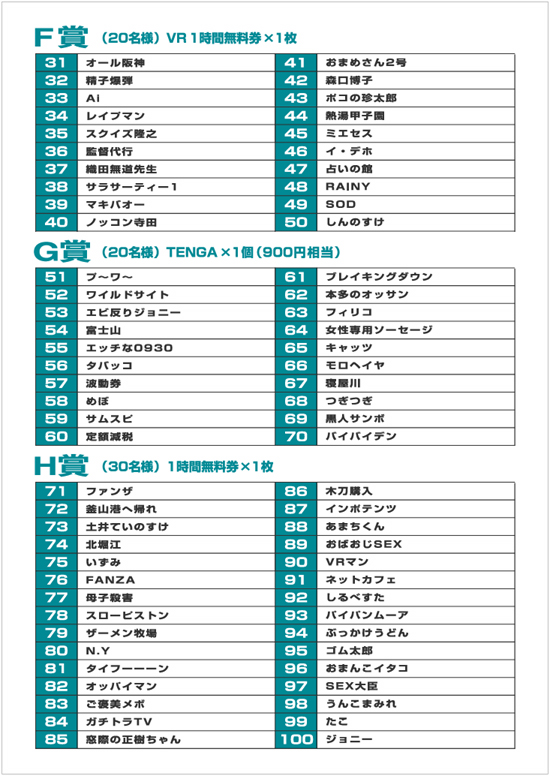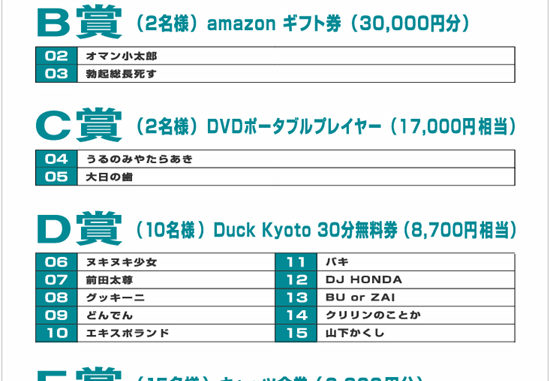 当選者の方は受付でアンケートネームと暗証番号をお伝え下さい。