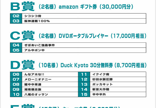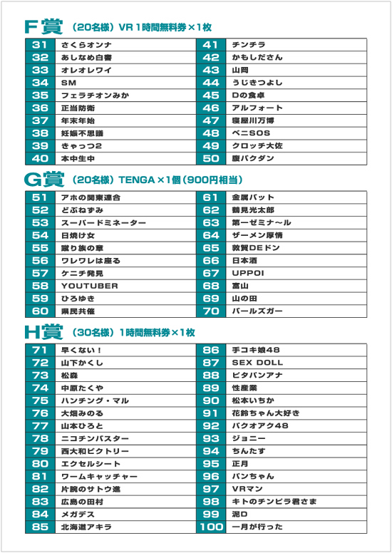 当選者の方は受付でアンケートネームと暗証番号をお伝え下さい。